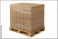 Cardboard boxes wrapped in plastic on wooden pallet with transparent background
