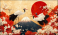 Traditional Japanese art style with cranes sakura blossoms Mount Fuji gold and red hues ukiyo-e inspired harmonious background
