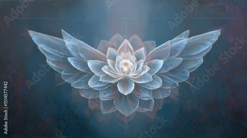 Fototapeta - visual for symbolic documentary | universal consciousness | divine serenity | translucent rose and pale blue | harmonic symmetry | ascending souls | luminous skin rendering | ethereal blending |