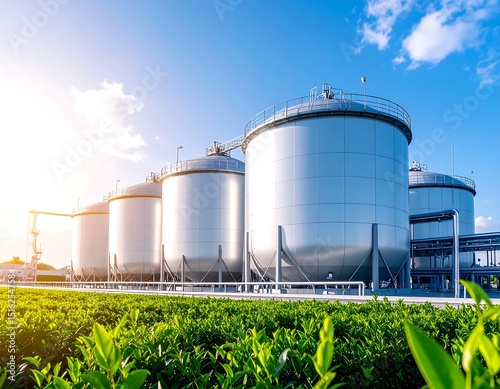 Fototapeta - Industrial storage tanks bathed in sunlight
