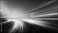 >Plakat>Abstract image of a curving road at night with light trails suggesting high speed, leading towards a distant city skyline under an orange-hued sky