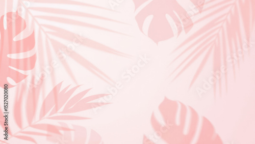 Fototapeta - Fondo color rosa pastel con sombra de hojas reflejadas sobre su superficie.