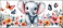 >Plakat>Uroczy, mały słoń siedzi pośród kolorowych kwiatów i motyli. Obrazek jest pełen delikatności, radości i dziecięcego uroku, idealny do ilustracji dla najmłodszych.