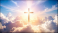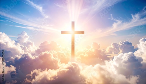 Abstract spiritual religious cross on the heaven with sunlight background