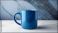 Fototapeta - A vibrant blue ceramic mug on a marble surface.