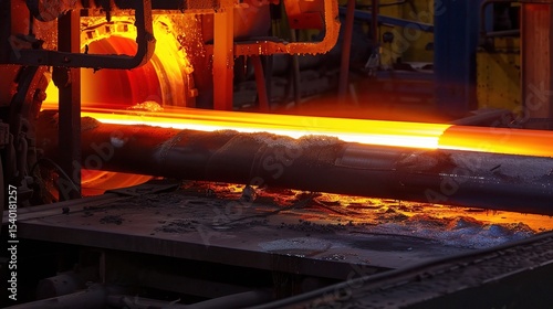 Fototapeta - Close-up of industrial heat treatment process in a furnace, showcasing metal workpieces undergoing hardening, tempering, and annealing with controlled temperature, cooling systems