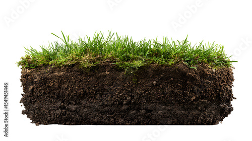 Fototapeta - Lush green grass and rich dark soil cross section nature background