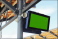 >Plakat>Train station digital display. Blank green screen for timetable. Empty board at modern railway platform. Travel and transport concept. Editable sign for schedule or information. Urban infrastructure.