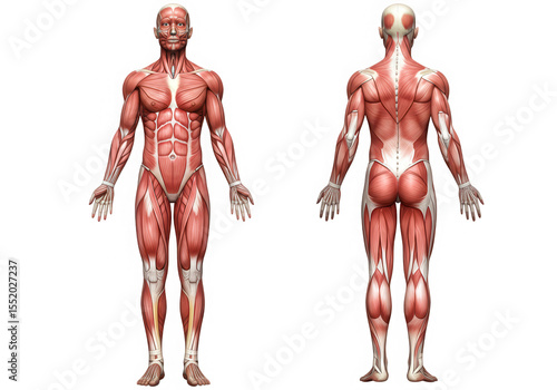 Fototapeta - Human muscular system front and back view isolated on transparent background