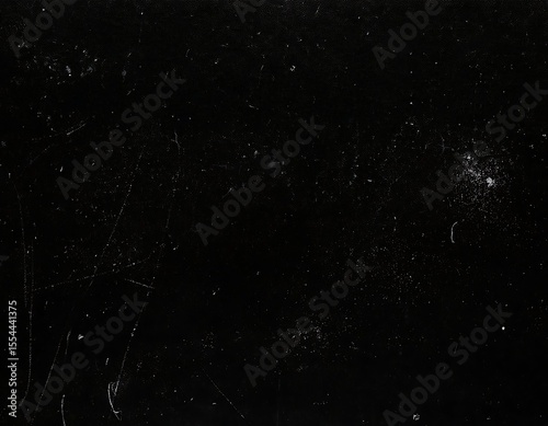>Plakat>Grungy black surface with numerous white scratches and dust particles, creating a distressed and textured overlay for abstract or vintage designs.