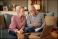 >Plakat>An elderly couple is sitting on a blue sofa in their living room, reviewing life insurance documents. The man points to paperwork while using a laptop to help make financial decisions.