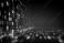 Digital curtain of glowing orange and white binary code with a dark, gradient background