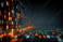 Fototapeta - Digital curtain of glowing orange and white binary code with a dark, gradient background