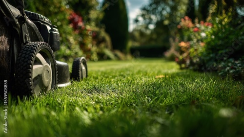 Fototapeta - Maintaining property landscaping means mowing, applying fertilizers, and controlling pests effectively.