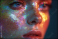 Young woman with glittering holographic makeup, a close up beauty portrait