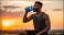 >Plakat>Young man drinking water during sunset after workout outdoor fitness athletic man hydrating muscular male sports activity healthy lifestyle exercise routine summer evening active lifestyle fitness
