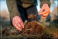 women in agriculture looking at a soil sample. girl on a farm looking at plant roots, female farmer looking at ecosystem health