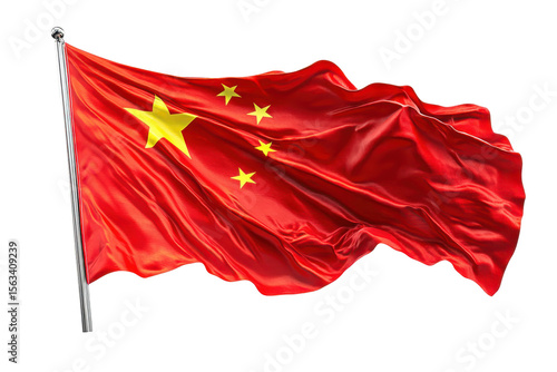 Chinese flag waving red fabric stars national symbol patriotism, isolated on a transparent background