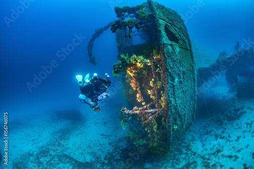 Fototapeta - Diving on the wreck BRIONI, Vis Island