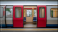 Side view of empty Subway train with open doors, station platform ready for passengers