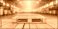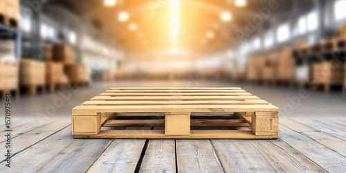 Fototapeta - Empty wooden pallet in a warehouse with warm lighting Generative AI