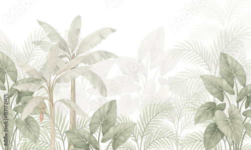 Fototapeta - Muted green banana leaf mural – tropical jungle botanical wallpaper in soft tones