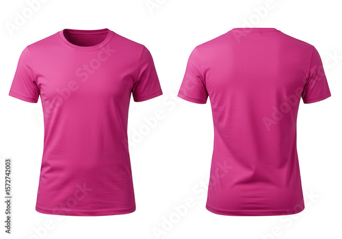 Fototapeta - A magenta tshirt is displayed from the front and back on a transparent background