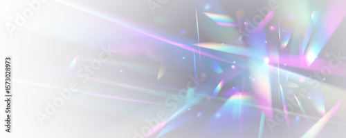 Fototapeta - Rainbow light prism effect, transparent background. Cool abstract blue holographic background of diagonal stripes in places with blur. PNG Hologram reflection, crystal flare leak shadow overlay.