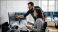 Two software engineers collaborating on code in modern office