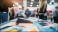 >Plakat>Event Marketing materials on display: showcasing colorful print material ready for the conference. A soft focus background suggesting people interacting around the conference.