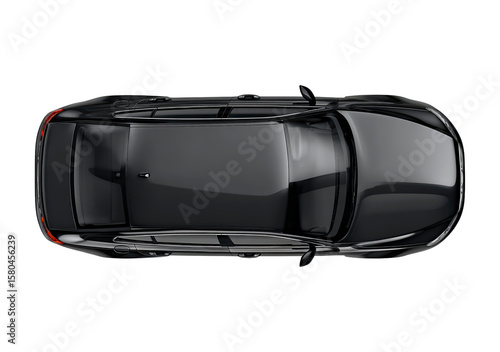 Fototapeta - Top view of a sleek black car on transparent background, PNG