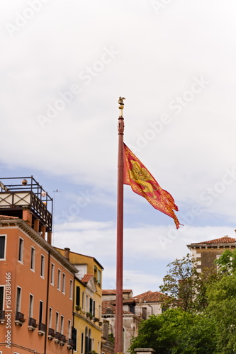 Fototapeta - Flaga Wenecji z lwem św. Marka na tle nieba