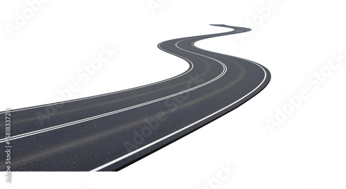 Fototapeta - Winding Asphalt Road with White Lines on Black Background