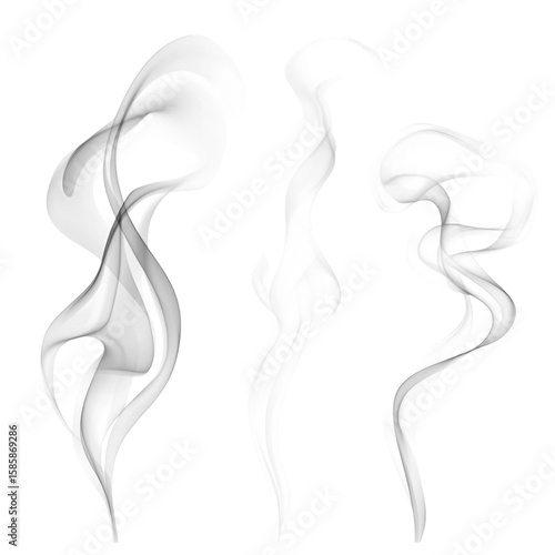 Set of white smoke waves. Vector design elements. Steam from food or hot drink isolated [Transparent Background PNG]