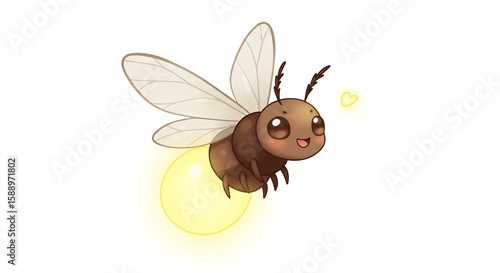 Cute cartoon firefly glows softly in flight. AI Generated