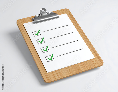 Fototapeta - A clipboard with a checklist of four items, each marked with a green checkmark.