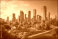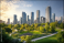 Fototapeta - skyline with mixed-use towers and leafy urban park in foreground