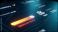 Fototapeta - Minimum stock level alert. An inventory interface shows a product level bar hitting a red "Minimum Stock" line, triggering a simple holographic alert.