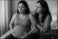 Pregnant woman breathing deeply and cradling her belly, receiving support from her midwife during a serene home labor experience