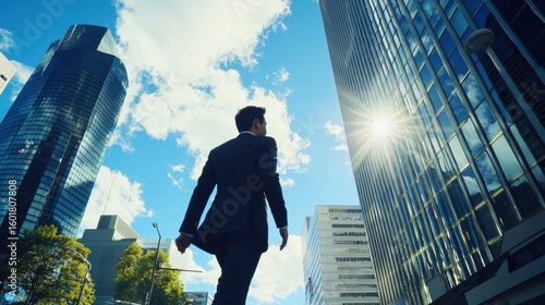 Fototapeta - 都市のビル街を歩くビジネスマンのシルエット