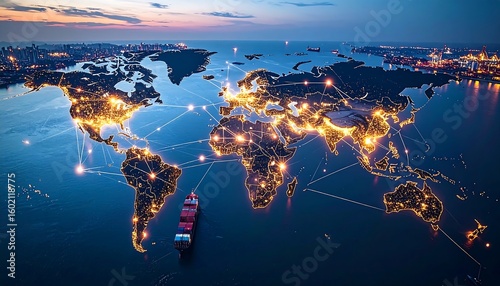 Global trade network at dusk