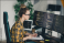 Confident female programmer working on software code using multiple screens in a modern office workspace