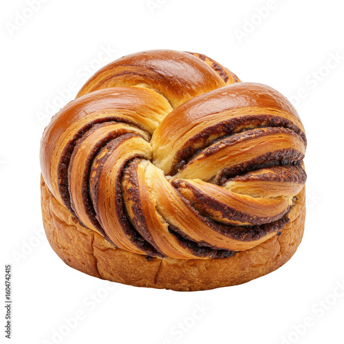 Fototapeta - Freshly baked sweet pastry with intricate twisted layers, placed on a clean surface, evoking warmth