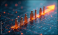 Wooden figures rise on a glowing digital path, illustrating growth, data-driven progress, and technological advancement.