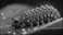 A close-up of a caterpillar on a leaf, its vibrant patterns and the tiny hairs on its body shown in exquisite detail.