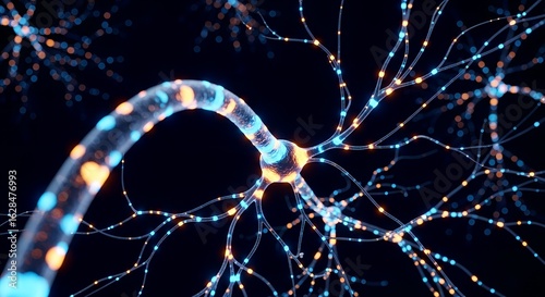 Closeup of neuron nerve cell for brain and neural network system in human body