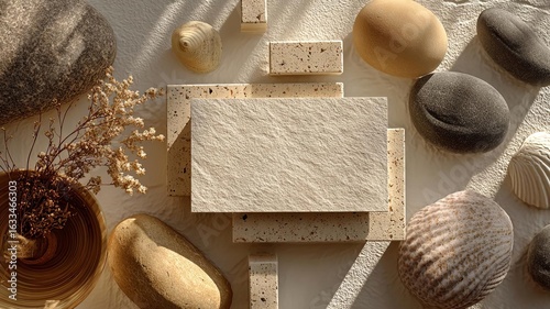 Fototapeta - A serene composition of natural stones and textures, perfect for minimalist decor.