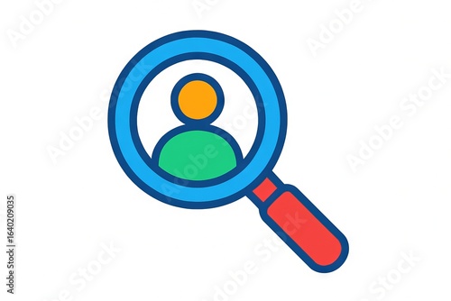 >Plakat>Colorful icon of magnifying glass with simple human figure symbol illustrating search concept for user identification and online profile discovery