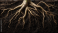 Robust plant roots deeply embedded in dark, fertile soil, symbolizing growth, stability, and natural foundation