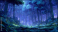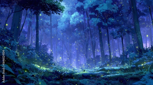 Fototapeta - Anime Style Night Forest Firefly Magic Scene isolated on a transparent background
